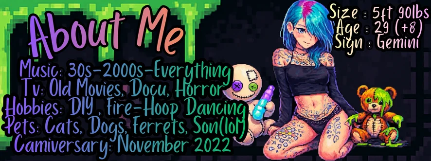 Hobbies: DIY, Fire-Hoop Dancing, Crochet, Epoxy